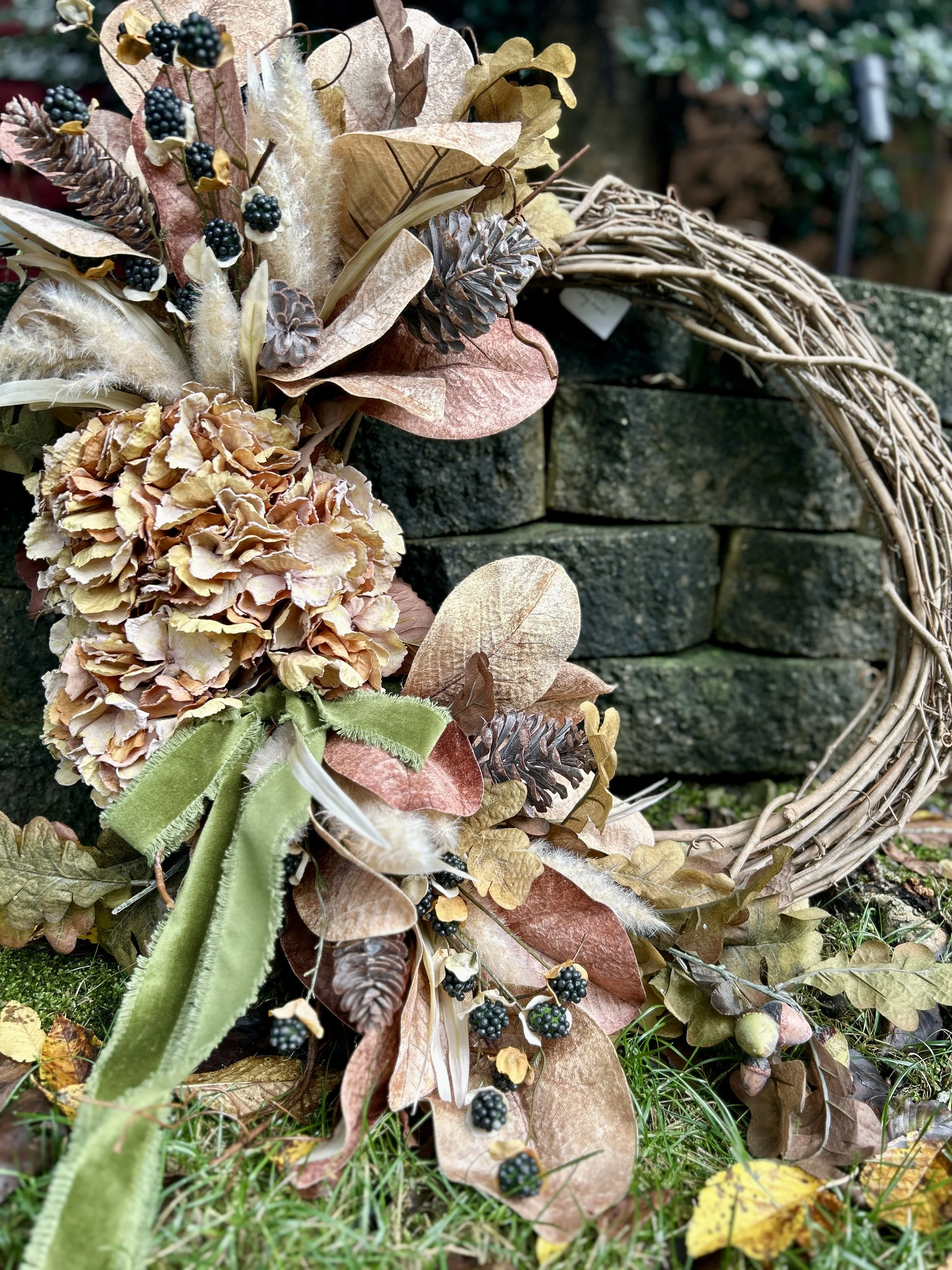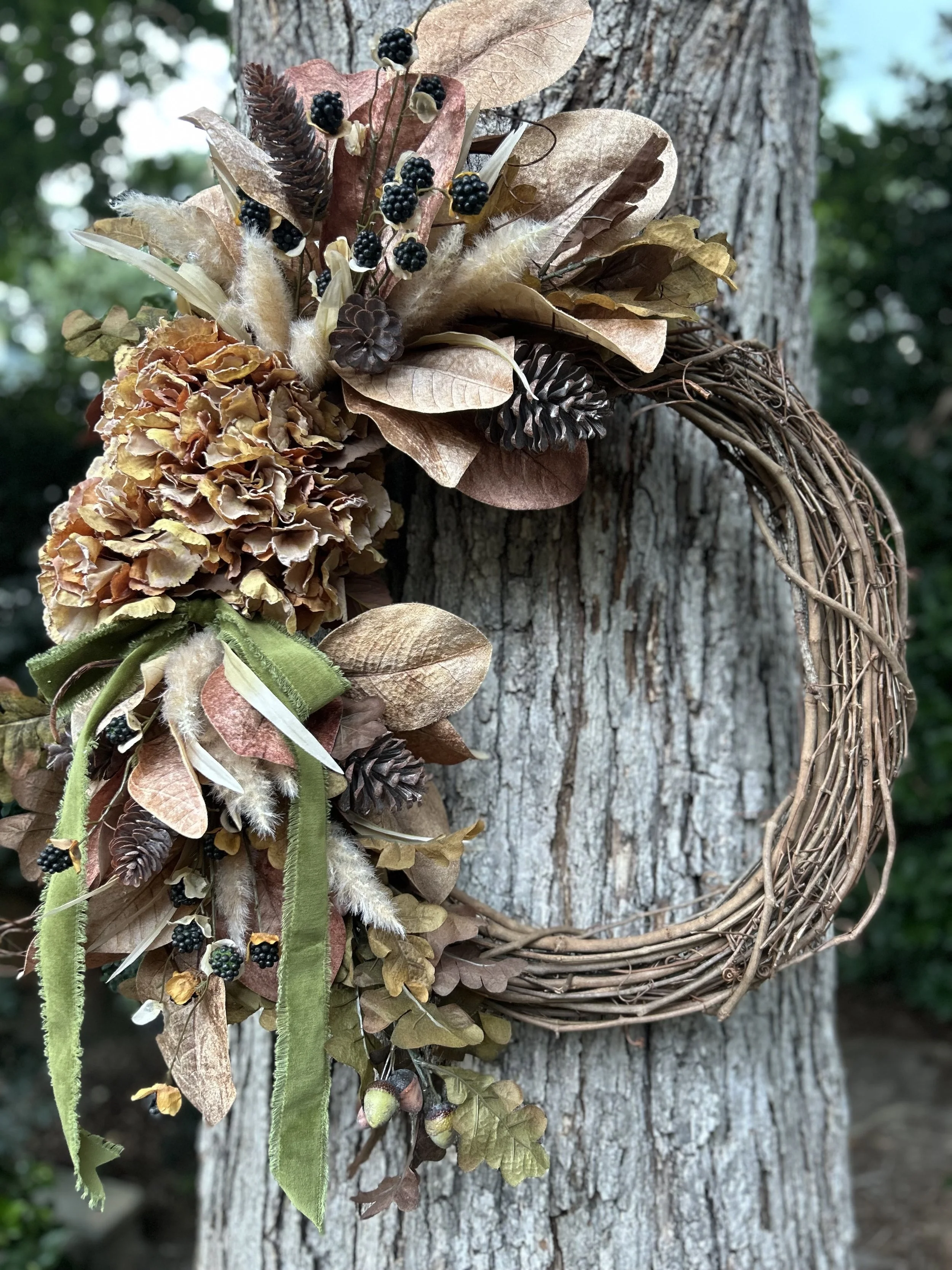 This one-of-a-kind wreath blends rustic elegance with vibrant autumn colors, making it a timeless piece you can enjoy year after year. Whether you’re decorating for Thanksgiving, fall gatherings, or simply love cozy seasonal touches, this wreath sets the perfect tone.